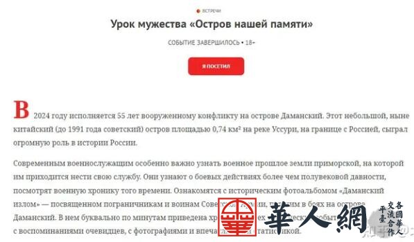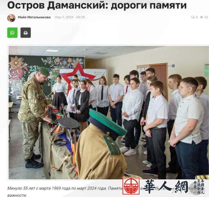 3月2日是珍宝岛事件发生55周年纪念日,一些俄国媒体报道了俄罗斯远东地区阿穆尔州举行的纪念活动(见图1)该州南部与我国黑龙江相邻。 图1 阿穆尔州N23 学校纪念活动 生命安全教师兼 N23 学校组织者谢尔盖·沙斯基对俄罗斯媒体说,“我们几乎在每个军事荣耀日的几乎所有课程中都会进行此类勇气课程。 需要这些课程,以便年轻人记住、知道并相应地理解他们的祖先为保护我们的祖国所做的一切。“ 图2 生命安全教师兼 N23 学校组织者谢尔盖·沙斯基 俄罗斯克拉斯诺亚尔斯克边疆区的泽列诺戈尔斯克学校举办了一场关于勇气的公开课,纪念这个日子——中苏边境冲突55周年。公共运动“边境兄弟会”的边防人员称:边境的历史就是国家的历史。公共运动“边境兄弟会”的边防人员称:边境的历史就是国家的历史。 图3 俄罗斯克拉斯诺亚尔斯克边疆区的泽列诺戈尔斯克学校举办了一场关于勇气的公开课 一些俄罗斯媒体回顾了珍宝岛事件,称”中国袭击了俄罗斯领土:达曼斯基发生了什么?中苏达曼斯基军事对峙55周年“ 图4 俄罗斯媒体的文章 还有俄罗斯媒体发布文章名称是”勇气的教训”我们的记忆之岛“。文章中国写道,2024 年是珍宝岛(俄国人称之为达曼斯基岛)武装冲突 55 周年。 这个乌苏里江上面积为 0.74 平方公里、与俄罗斯接壤的小岛,现在属于中国(1991 年为苏联),在俄罗斯历史上发挥了巨大作用。对于现代军事人员来说,了解他们所服役的沿海土地的军事历史尤为重要。 他们将了解半个多世纪前的军事行动,观看当时的军事编年史。 他们将熟悉历史相册“达曼斯基突破”——献给在达曼斯基岛战斗中阵亡的苏联边防部队和士兵。 它确实提供了这些悲惨事件的详细年表,包括目击者的记忆、照片和令人印象深刻的统计数据。 图5 还有俄罗斯媒体发布文章名称是”勇气的教训”我们的记忆之岛“ 根据中俄两国政府签署的《中俄国界东段的补充协定》俄罗斯将把占领的银龙岛的全部、黑瞎子岛的一部分领土,以及额尔古纳河上靠近内蒙古满洲里的阿巴盖图洲渚,归还给中国。2005年4月,俄罗斯政府批准了这个补充协定。此前一个月,全国人民代表大会常务委员会也通过了关于批准《中华人民共和国和俄罗斯联邦关于中俄国界东段的补充协定》(2004年)的决定。 图6 《中俄国界东段的补充协定》内容 图7 《中俄国界东段的补充协定》内容 至此,不仅黑瞎子岛的领土争议尘埃落定,中俄长达4,300公里的边界也全部得到了确认。2008年10月,中俄两国政府在黑瞎子岛上举行了中俄国界东段界桩揭幕仪式。参见中国政府网,”中国俄罗斯在黑瞎子岛举行国界东段界桩揭幕仪式。 |